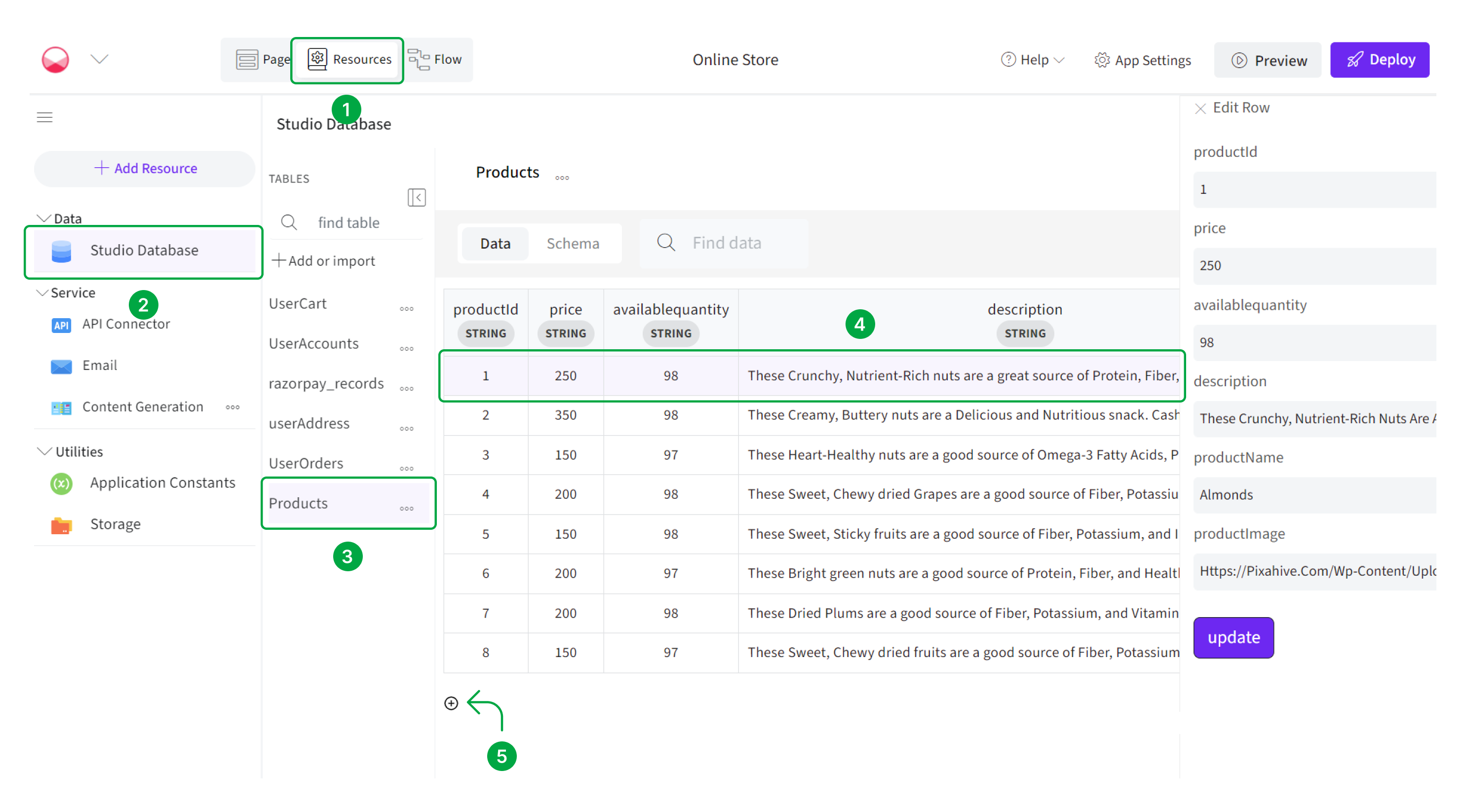 Within the ‘Studio Database,’ choose the ‘Products’ table.